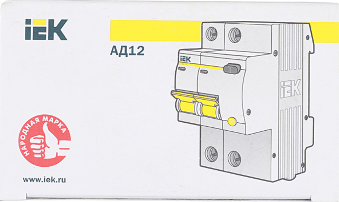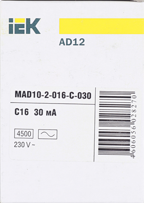 Дифференциальный автомат 2P 16А тип С 30 мА 4.5 kA IEK АД-12