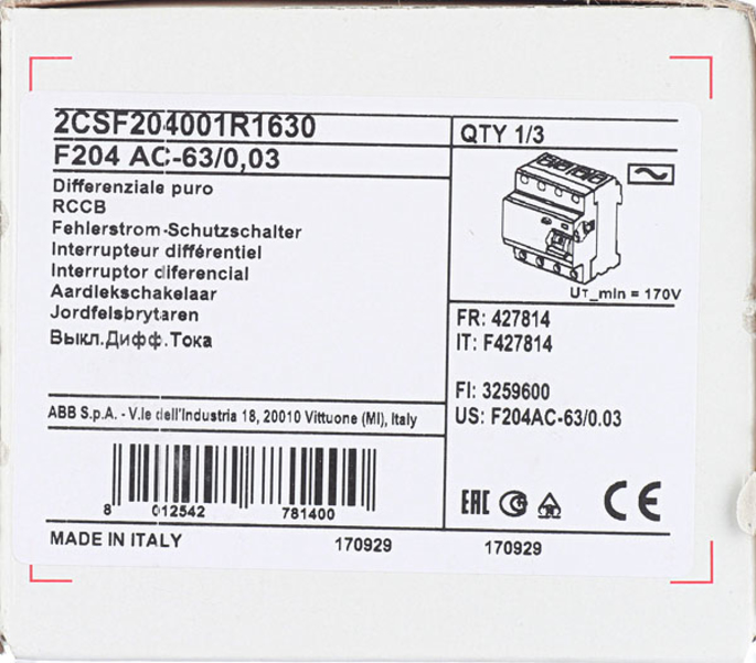 УЗО ABB F204 4P 63А 30 мА