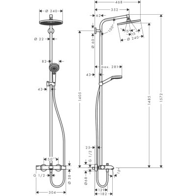 • Материал верхнего душа ABS-пластик