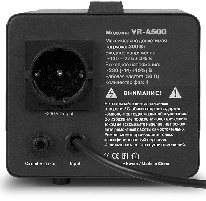 • Максимальная выходная мощность 500 ВА