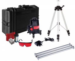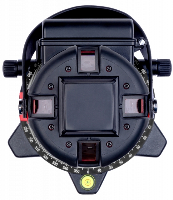 Единственный прибор с поворотным основанием и комбинированной разверткой лазерных лучей: круговая горизонтальная плоскость 360°, лазерный отвес (точка), а также перпендикулярные вертикальные плоскости