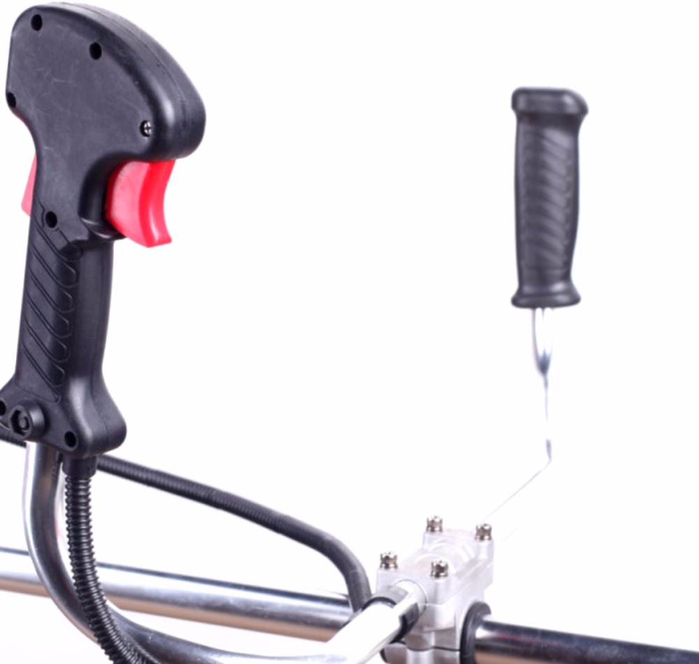 Конструкция триммера достаточно проста: это двигатель (электрический либо бензиновый), привод, который раскручивает режущий механизм. Помимо этого присутствуют ручки и наплечный ремень.