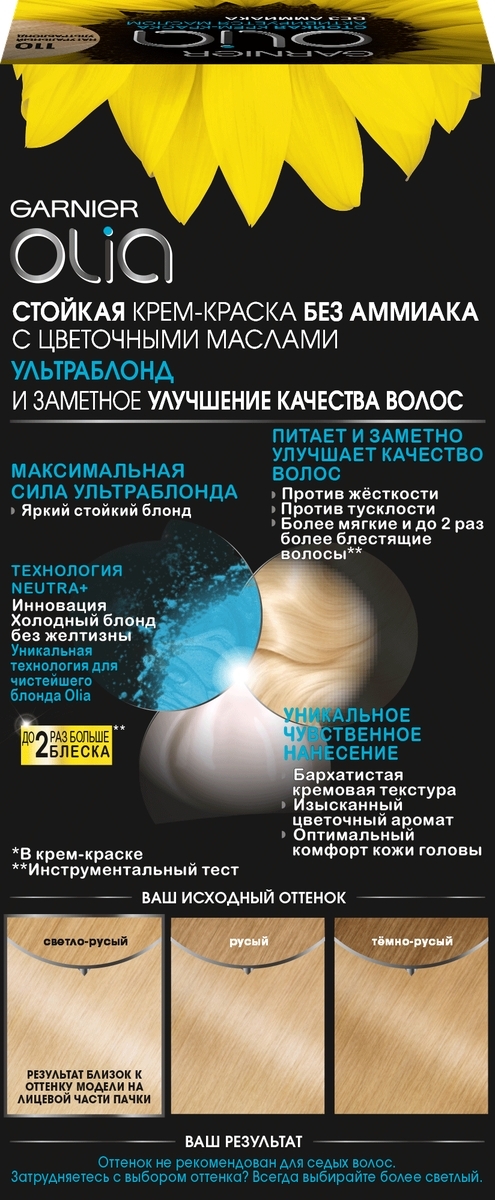 Стойкая крем-краска Garnier Olia, без аммиака, оттенок 110 Ультраблонд, 112 мл