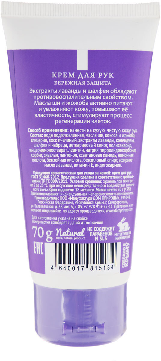 Крем для рук Крымская Лаванда "Бережная защита", 70 г
