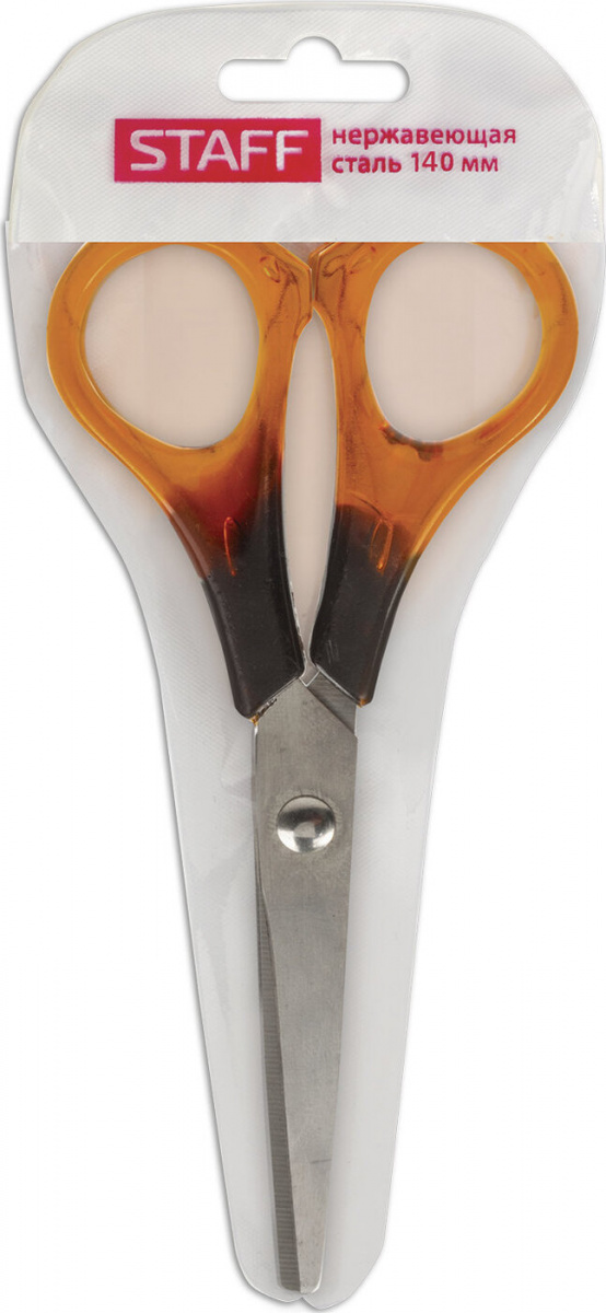 Ножницы Staff 140 мм, ручки под янтарь, ПВХ чехол с европодвесом, 236936