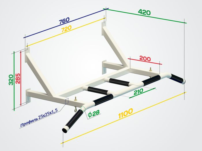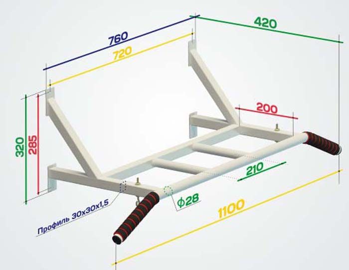 Турник настенный СпектрСпорт "Классик 1", с двумя крючками для боксерского мешка, цвет: белый