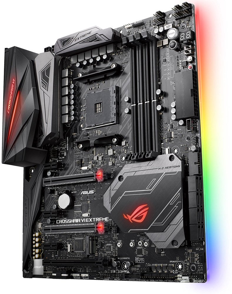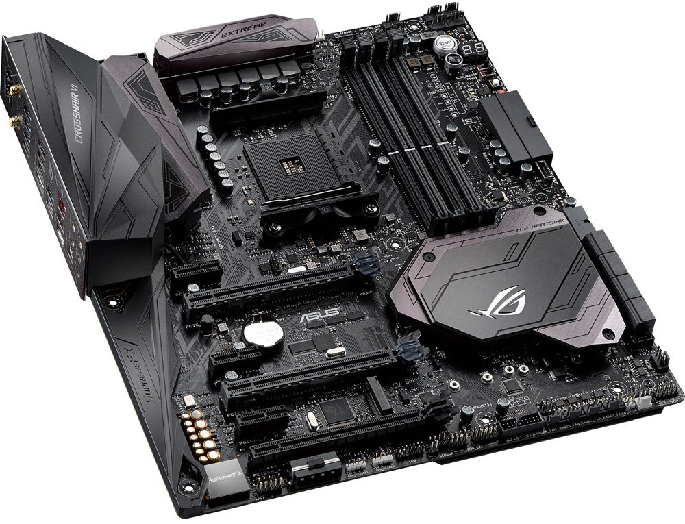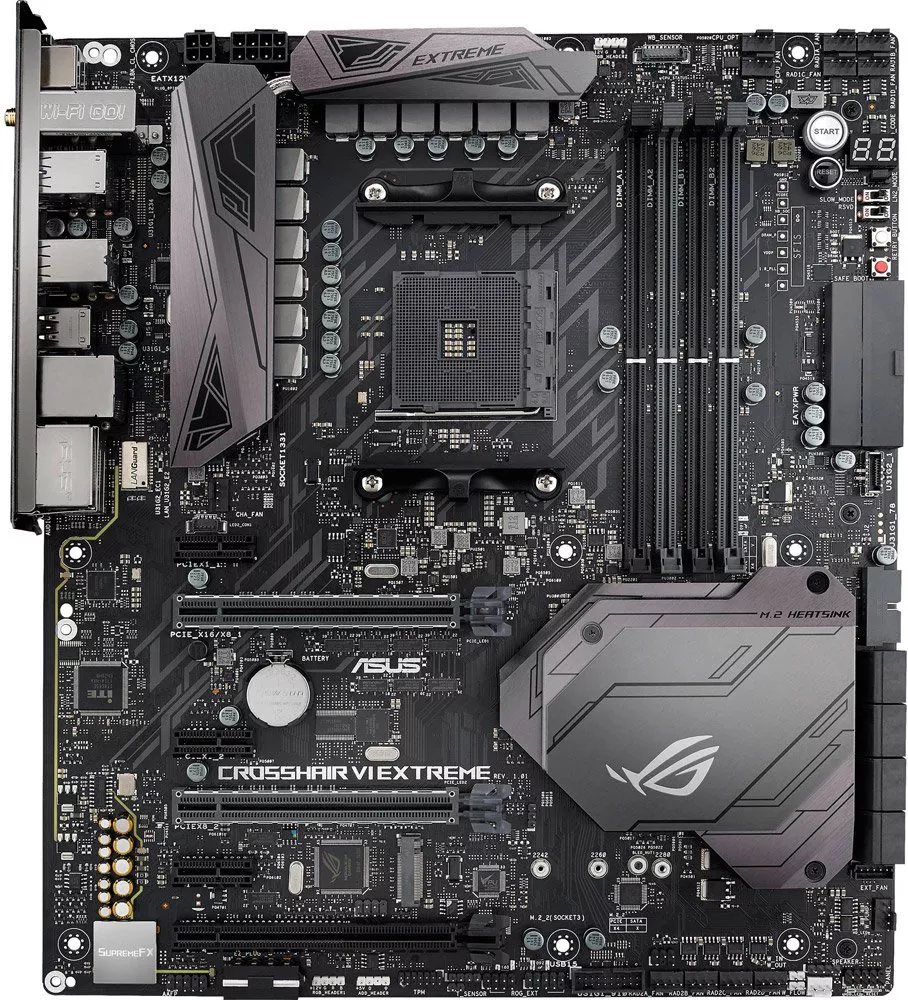 EATX, AMD Socket AM4, чипсет AMD X370, память - 4 х, DDR4, слоты: 4 - PCIe x16, 3 - PCIe x1, Bluetooth, Wi-Fi.