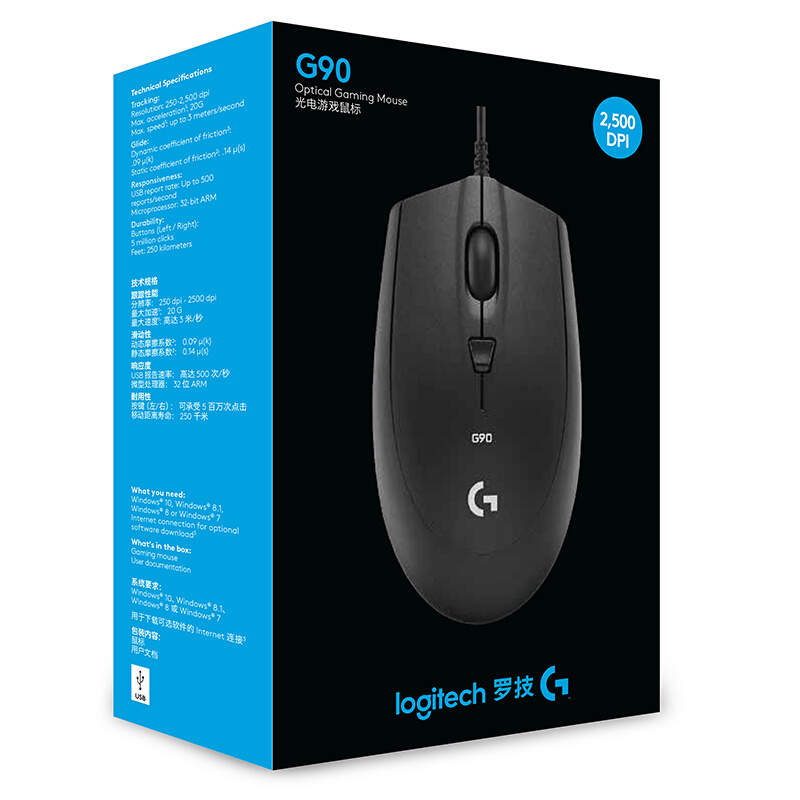 Проводная мышь Logitech G90, черный