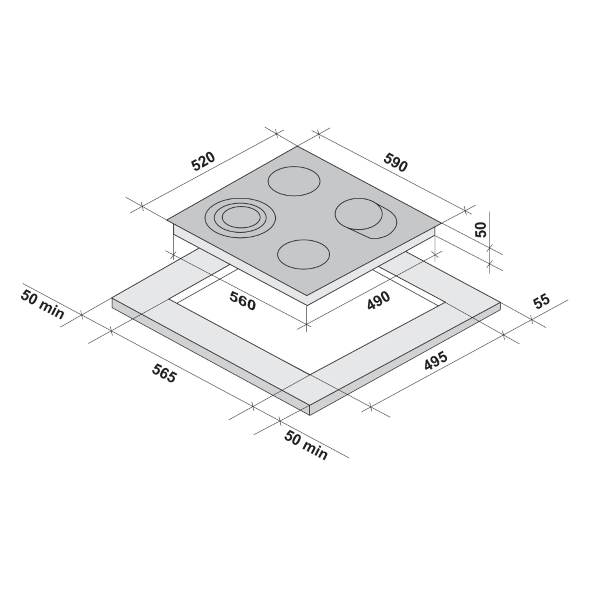 Варочная панель электрическая KRONA Brillare 4 конфорки, 60х52 см, цвет черный