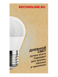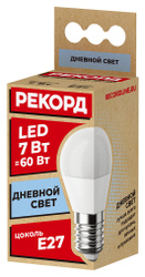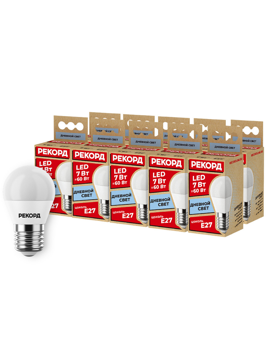 Лампочка Рекорд LED P45, Нейтральный белый свет, E27, 7 Вт, Светодиодная, 10 шт.