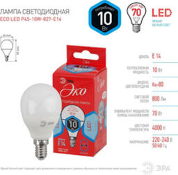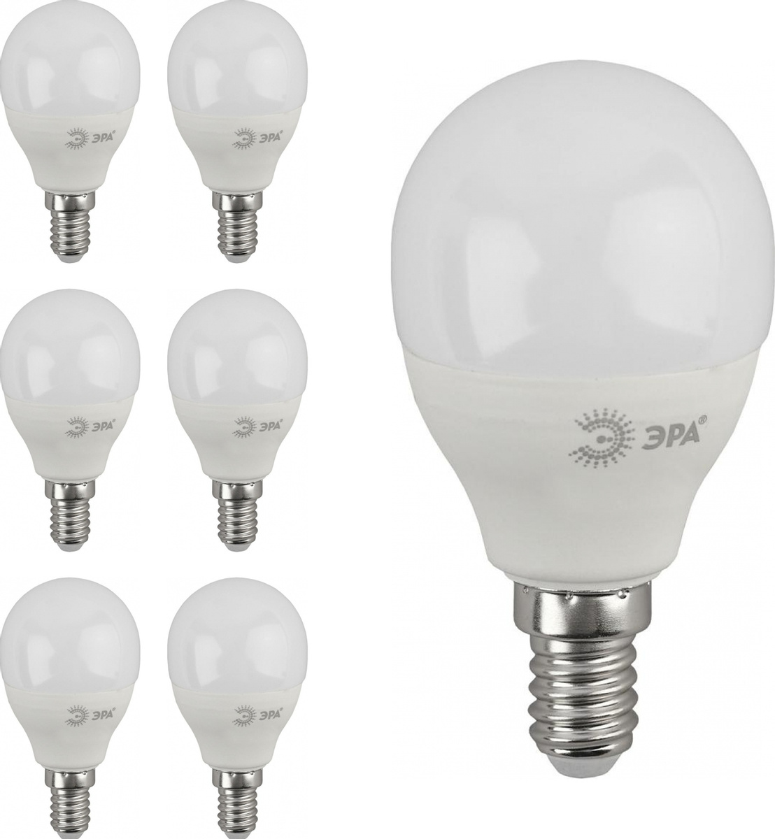 Лампочка Эра ECO 260180/6, Холодный белый свет, E14, 10 Вт, Светодиодная, 6 шт.