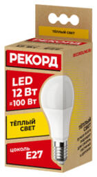 Лампочка Рекорд LED А60, Теплый белый свет, E27, 12 Вт, Светодиодная, 10 шт.
