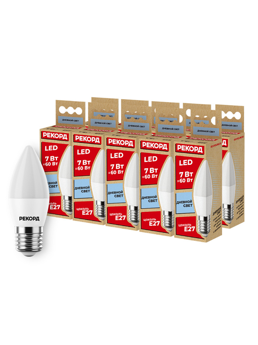 Лампочка Рекорд LED B37, Нейтральный белый свет, E27, 7 Вт, Светодиодная, 10 шт.