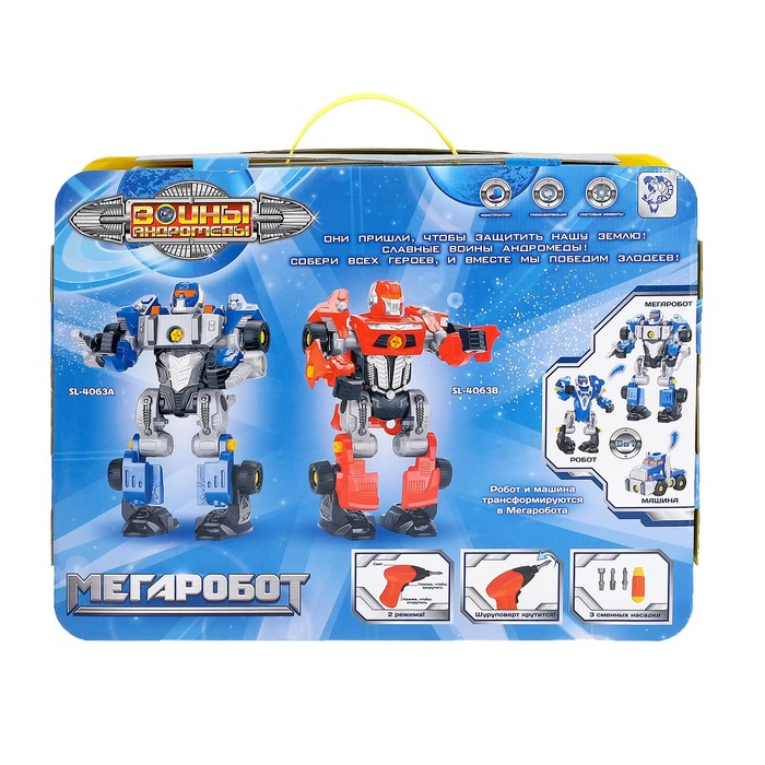 Конструктор-машина «Мега робот», 3 в 1, со световым шуруповёртом, работает от батареек