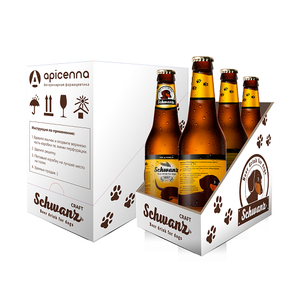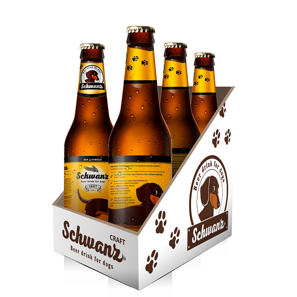 Пивной напиток для собак «Хвост» («SCHWANZ»). Пивной напиток для собак Shwanz от ведущей российской фармацевтической ветеринарной компании Apicenna оформлен в качестве оригинального крафтового пива и представляет собой полезное лакомство на основе ячменного солода, пивных дрожжей и печёночного бульона. Продукт богат незаменимыми жирными кислотами Омега-3 и Омега-6, которые благотворно влияют на состояние кожи и придадут блеск шерсти Вашего питомца, а ячменный солод позаботится о здоровье кишечника Вашего друга.