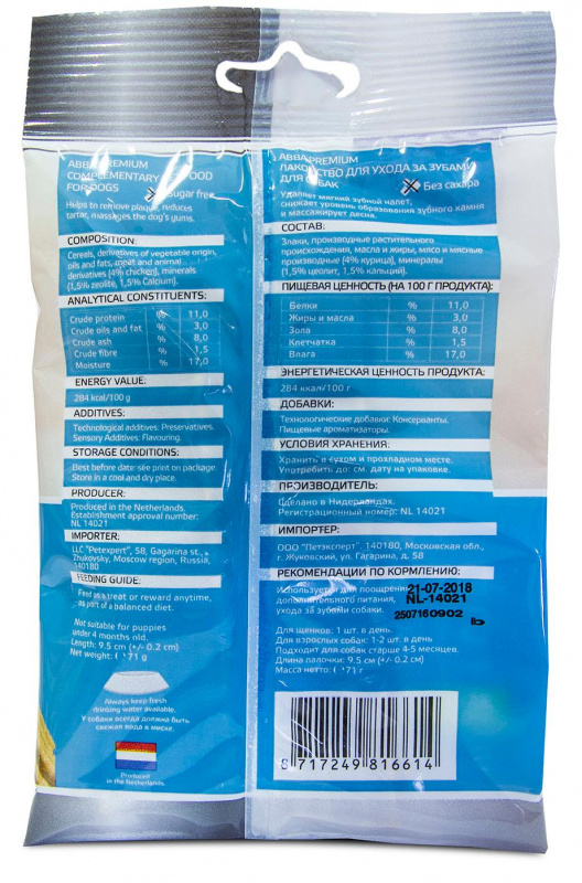 Авва Premium Dental Sticks Small Breeds лакомство для собак мелких пород для ухода за зубами, со вкусом мяса, 78 г 71 г