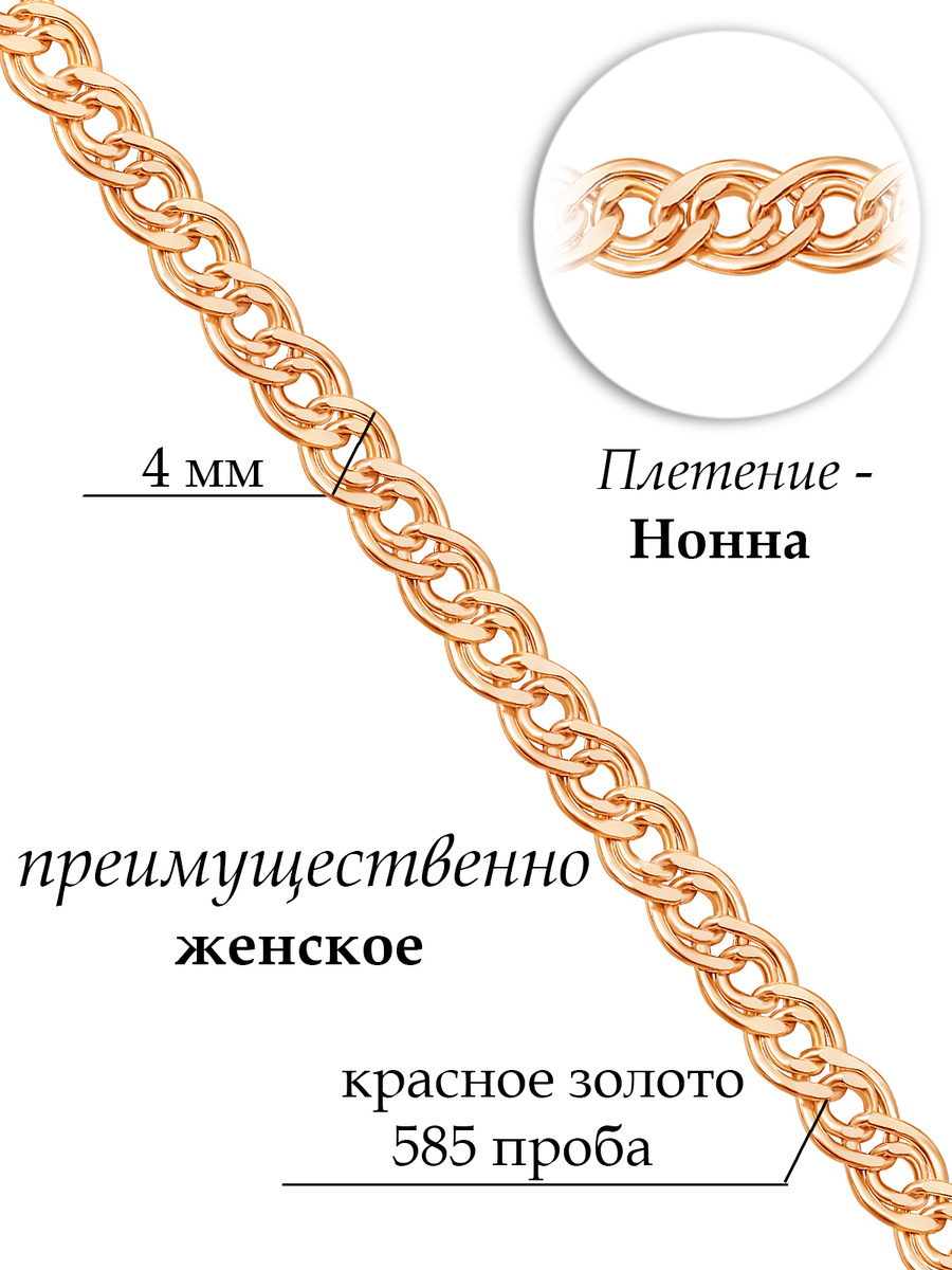 Цепочка Lucente золотая цепь 585 пробы на шею пустотелая плетение Нонна
