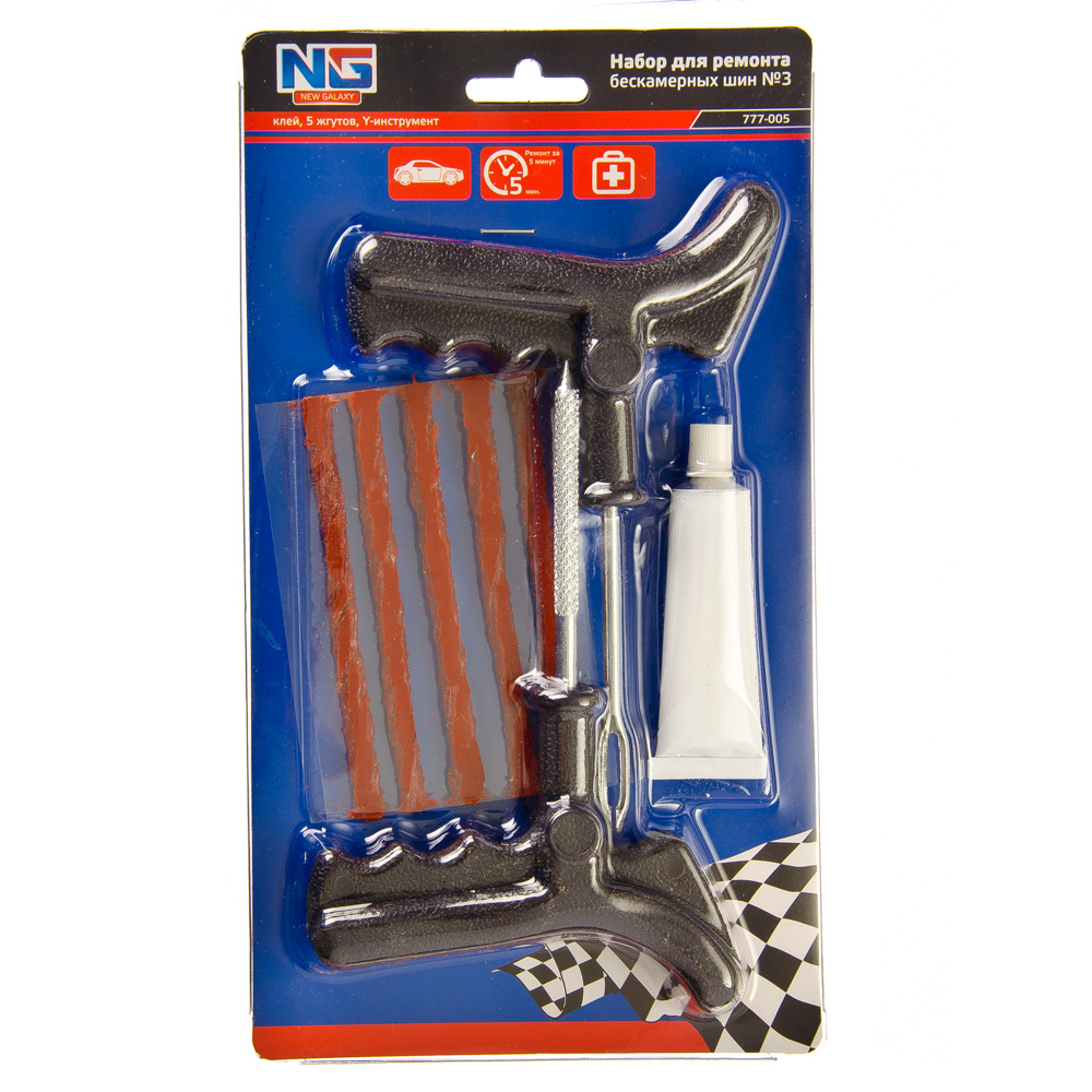 13985 NEW GALAXY Набор для ремонта бескамерных шин №3: клей, 5 жгутов