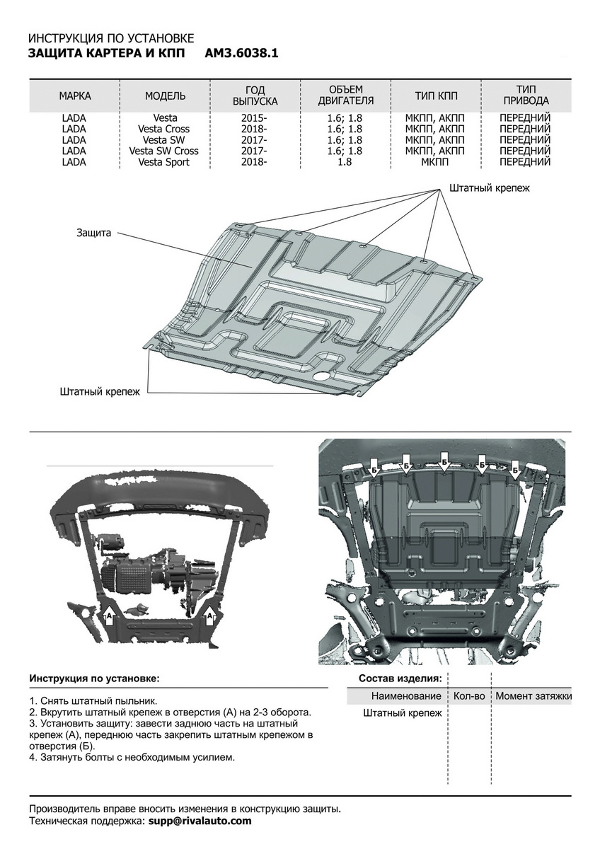 - Тип Защита картера/КПП