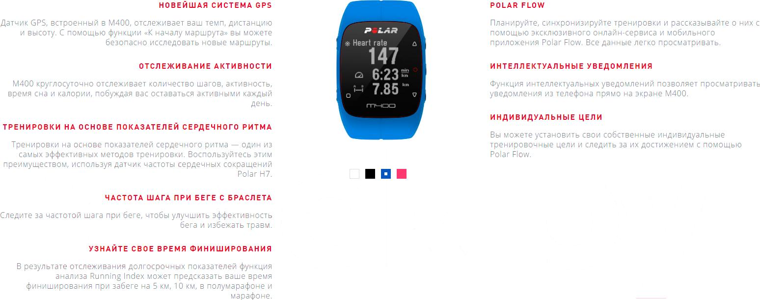 • Способ крепления наручный (пульсометр Polar M400), нагрудный (датчик частоты сердечных сокращений Polar H7)