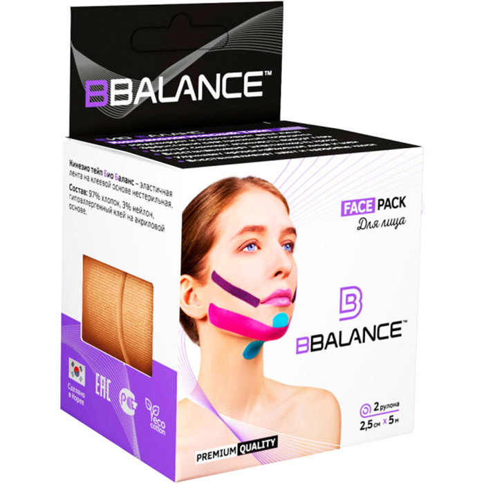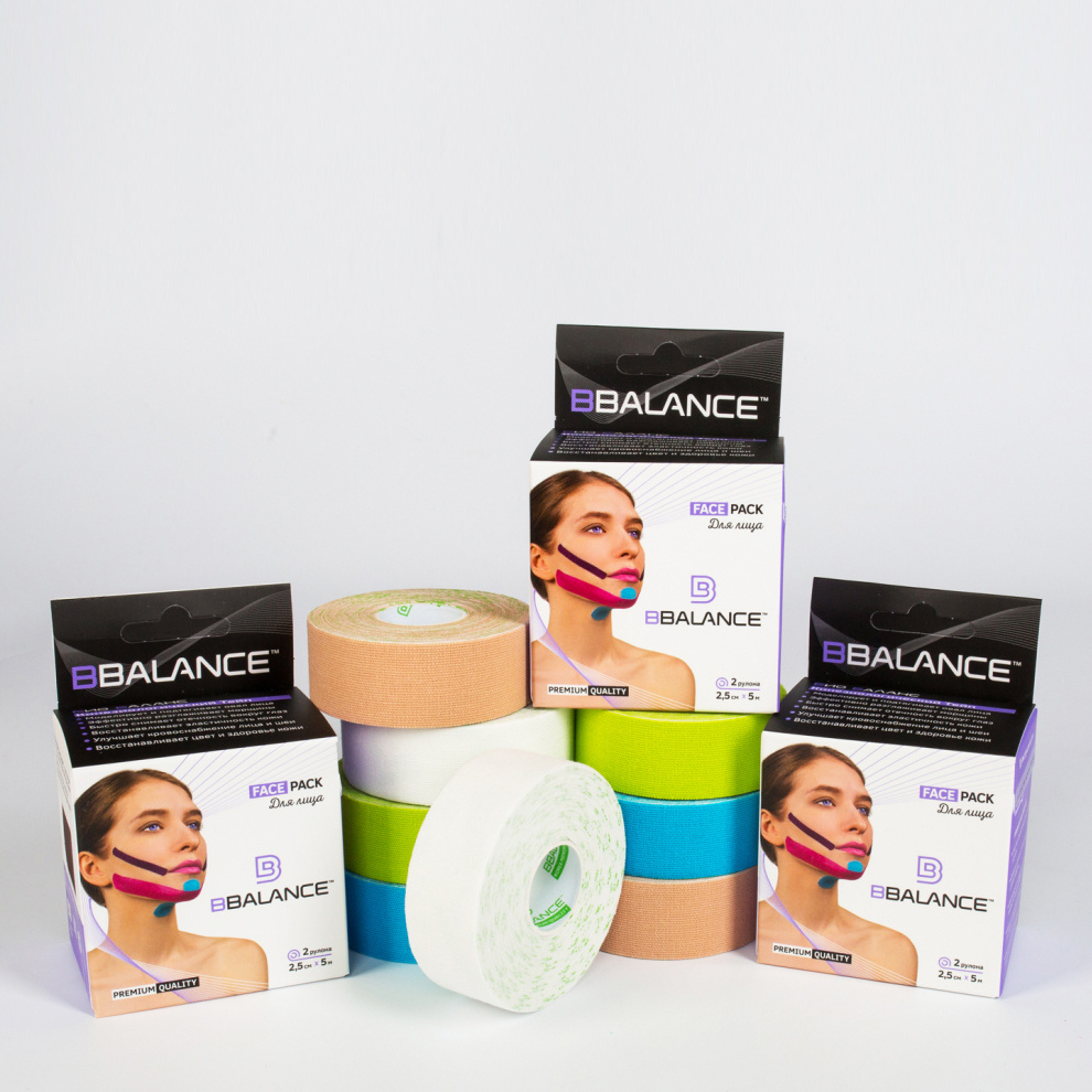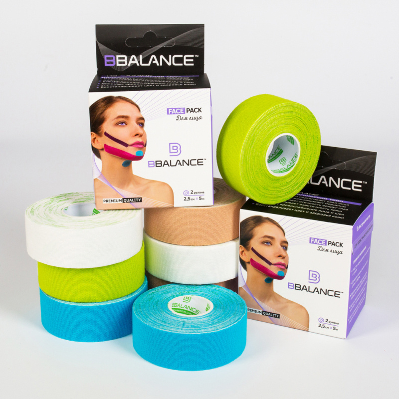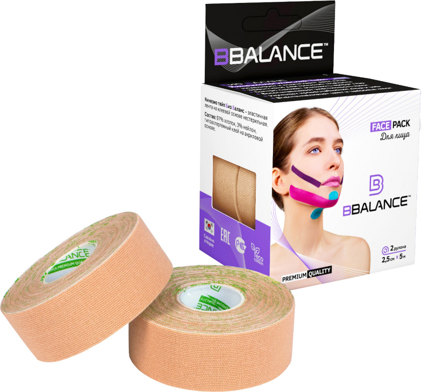 BBTape Face Pack Косметологический кинезио тейп для тейпирования лица (2,5см*5м) бежевый