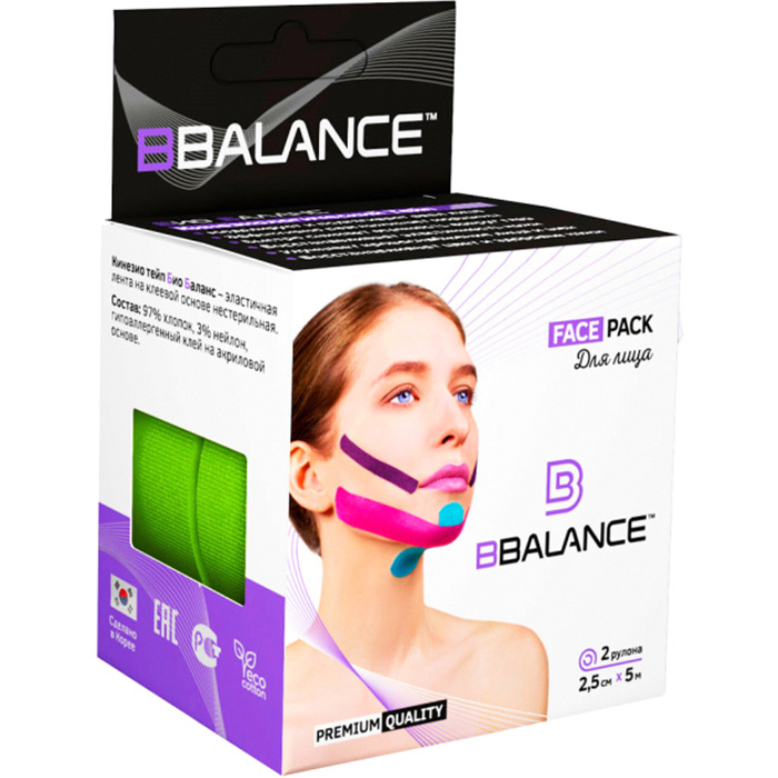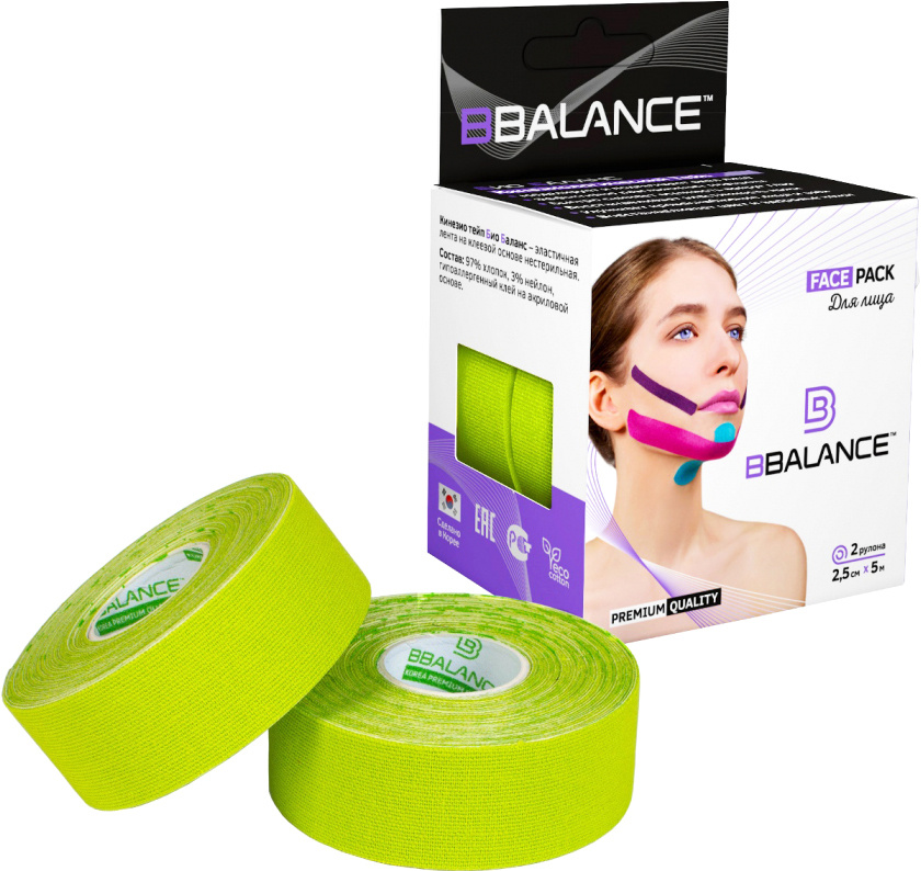 BBTape Face Pack Косметологический кинезио тейп для тейпирования лица (2,5см*5м) лайм