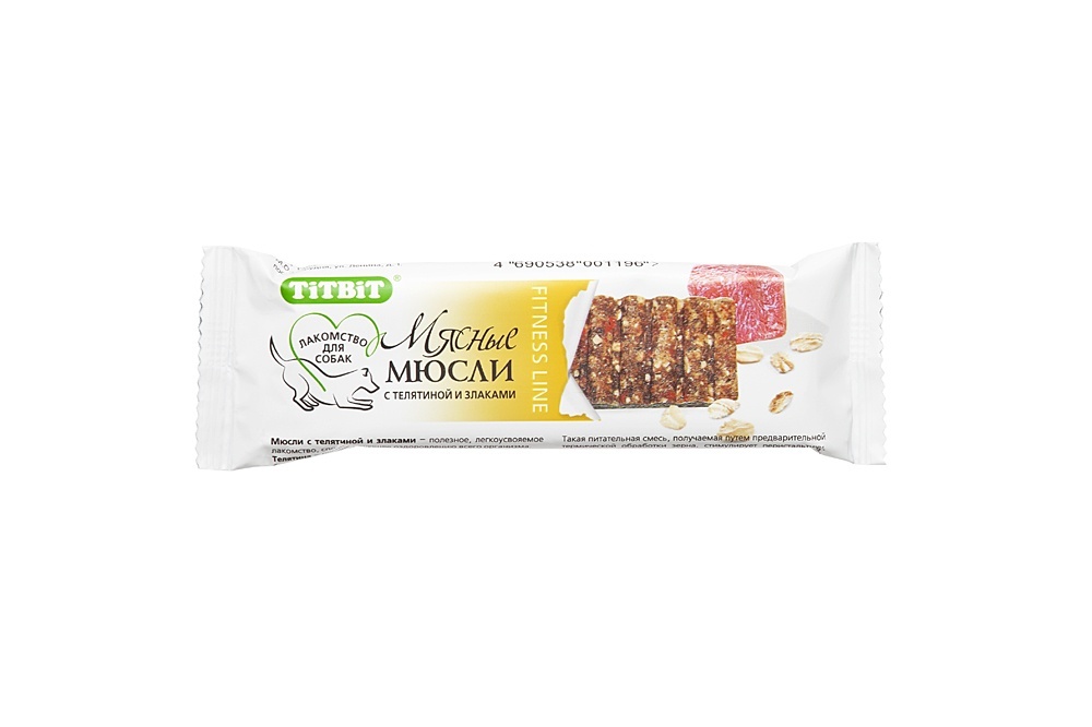 TiTBiT мюсли Fitness с телятиной и злаками, 1 шт. – купить в интернет зоомагазине Petshop.ru: цены, отзывы, характеристики. Быстрая доставка в Санкт-Петербурге, Москве и по России.
