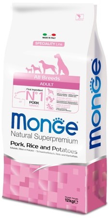 MONGE SPECIALITY LINE ALL BREEDS ADULT PORK, RICE & POTATOES - это полноценный сбалансированный рацион для взрослых собак всех пород с особыми потребностями. В состав входят отборные гипоаллергенные источники белка животного происхождения, что позволяет легко исключить из рациона ингредиенты, вызывающие аллергию.