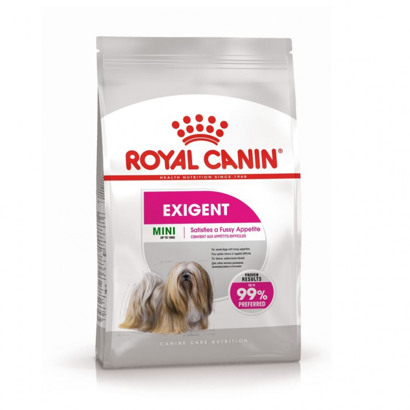 Mini Exigent сухой корм для собак маленьких пород от Royal Canin понравится даже питомцам, привередливым в питании. Благодаря специально подобранным ингредиентам корм MINI EXIGENT обладает ароматом, стимулирующим аппетит. Размер, форма и плотность крокет MINI EXIGENT специально разработаны для небольших собак. Каждый кусочек сухого корма в форме подушечки, хрустящей снаружи и мягкой внутри, имеет аппетитную текстуру, привлекательную для собак.