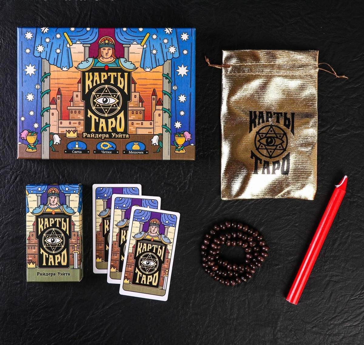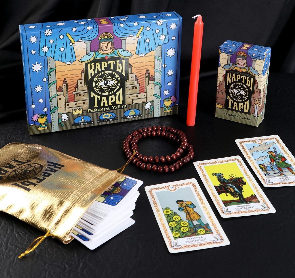Карты Таро "Колода Райдера Уэйта", 78 карт, мешочек, свеча, четки