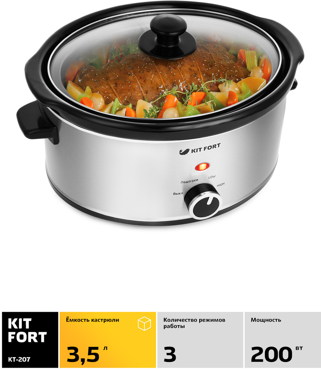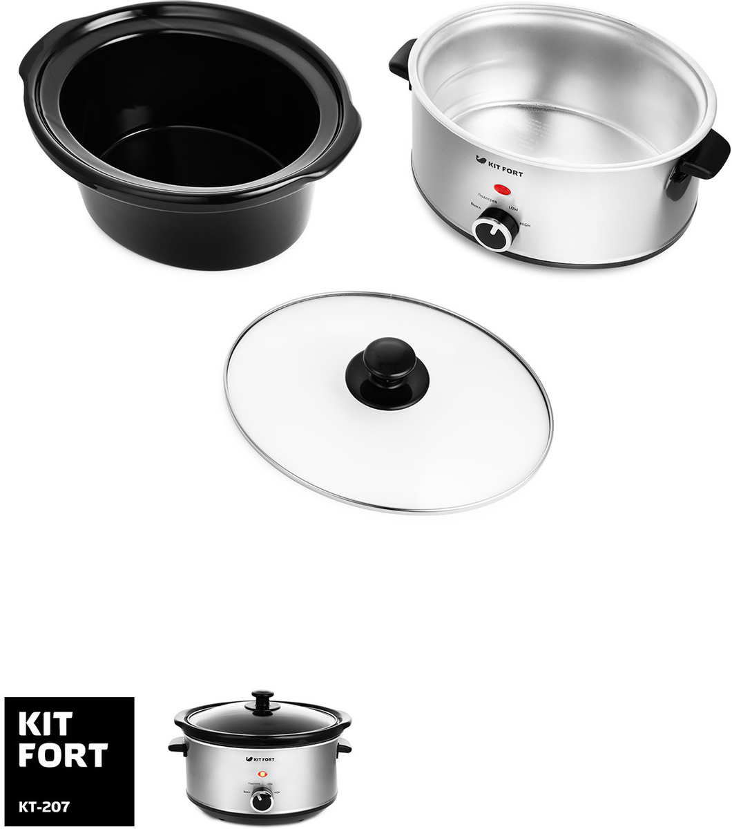 Медленноварка Kitfort КТ-207, черный, серебристый