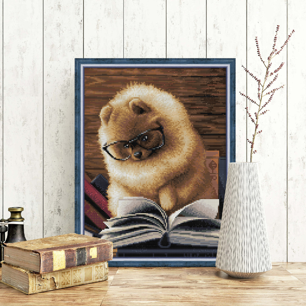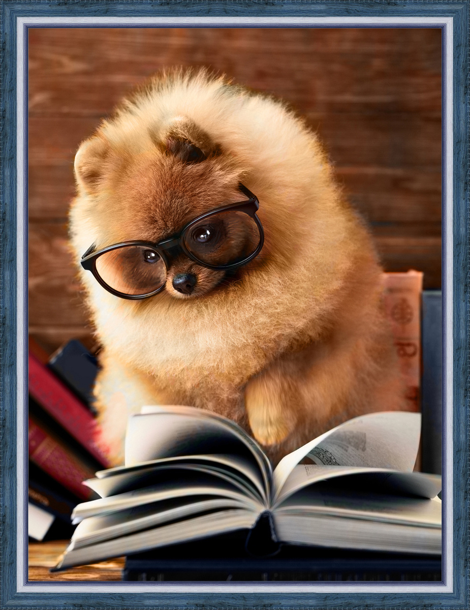 Алмазная мозаика Алмазная живопись "Шпиц за книгой" 30х40см