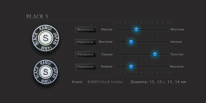 Наклейка для кия Kamui Black 14мм Soft 1шт.