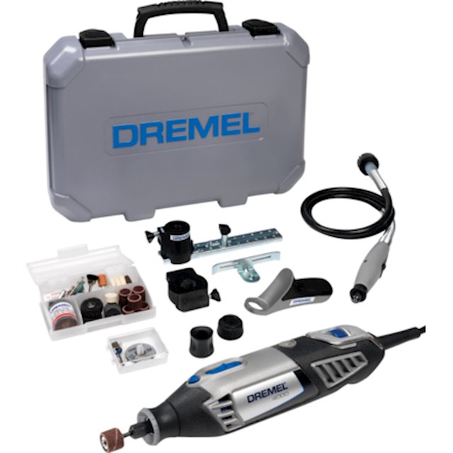 - Комплектация Dremel 4000; 65 насадок Dremel в мини-футляре (в том числе стартовый набор EZ SpeedClic); гибкий вал; насадка в виде карандаша; фрезеровальный циркуль с параллельным упором; платформа для обработки; удобная рукоятка; инструкция; чемодан для хранения