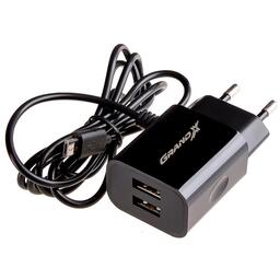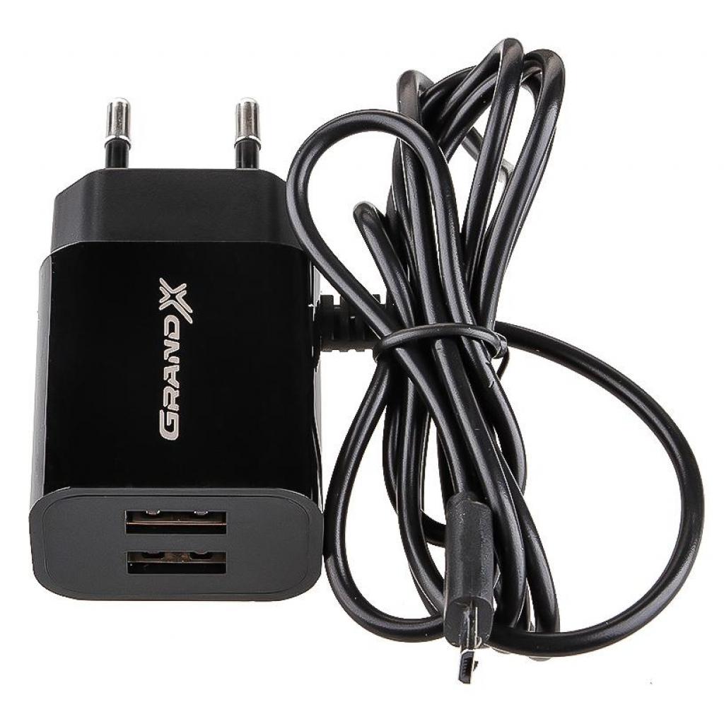 Зарядное устройство Grand-X 5V 3,1A 2USB + micro USB Black с защитой от перегрузки (CH-65B)