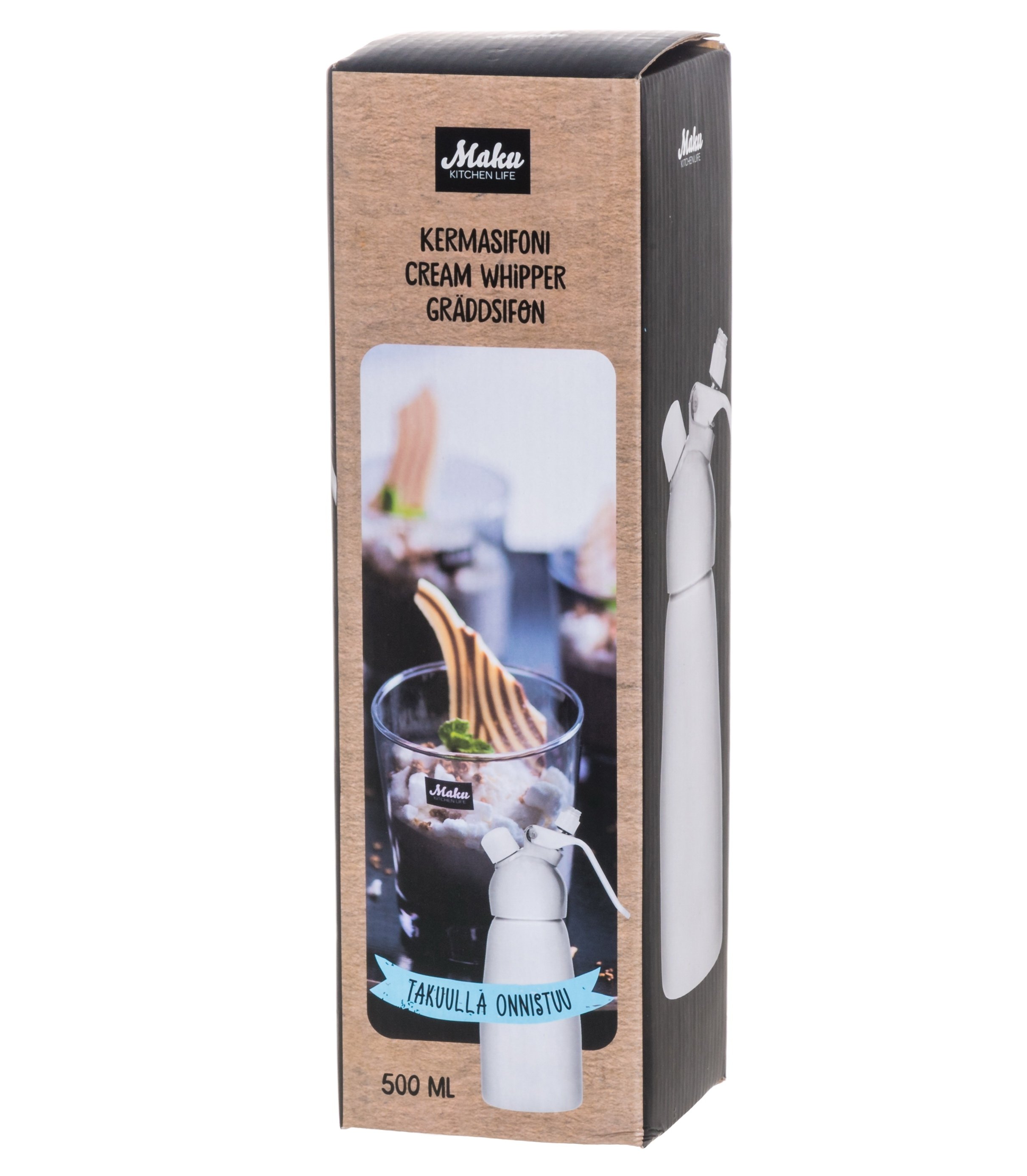 - Описание При помощи этого кулинарного сифона можно за пару минут приготовить взбитые сливки. Для этого достаточно залить в него простые сливки из пакета и вставить в сифон баллончик с углекислотой как для сифона с газировкой. Таким же способом можно быстро ароматизировать чесноком или травами растительное масло, для этого в балон помещаем необходимые ингридиенты, запрвляем балон и, аккуратно откручивая крышку, стравливаем давление. Maku - финский бренд посуды и кухонной утвари. Скандинавский дизайн, внимание к деталям, широкий ассортимент и отличное соотношение цены и качества. У Maku найдется практически все необходимое для вашей кухни.