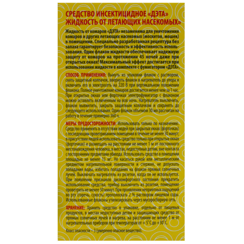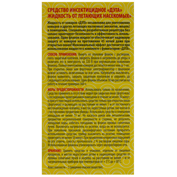 Жидкость для фумигатора от летающих насекомых Дэта, флакон 30 мл, 45 ночей