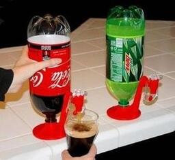 ИспользованиеПоставьте бутылку с газировкой или любым другим напитком на стол и открутите крышку. После чего возьмите диспенсер и прикрутите его основание к бутылке. После этого аккуратно переверните конструкцию и поставьте на стол. Чтобы налить кружечку освежающего напитка, просто нажмите на прозрачный рычаг диспенсера.