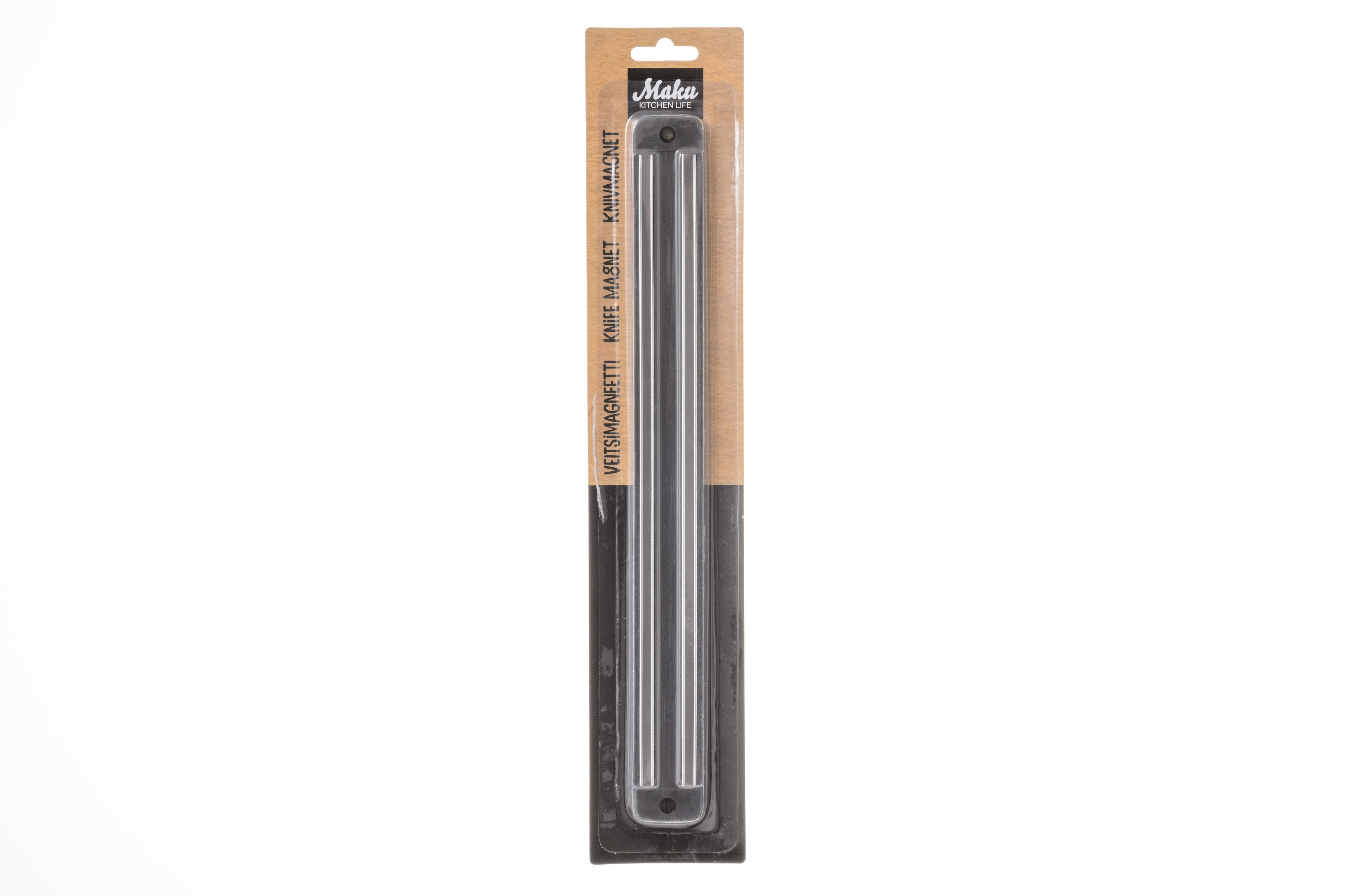 - Описание Магнитный держатель для ножей. Длина 33 см. Maku - финский бренд посуды и кухонной утвари. Скандинавский дизайн, внимание к деталям, широкий ассортимент и отличное соотношение цены и качества. У Maku найдется практически все необходимое для вашей кухни.