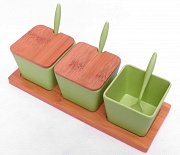 - Описание Емкости и ложки сделаны из экологичного материала: синтез пластика и бамбуковых волокон. Протирать только сухой тряпкой. СОСТАВ: 3 шт. х Банка; 3 шт. х Крышка; 3 шт. х Ложка; 1 шт. х Подставка;