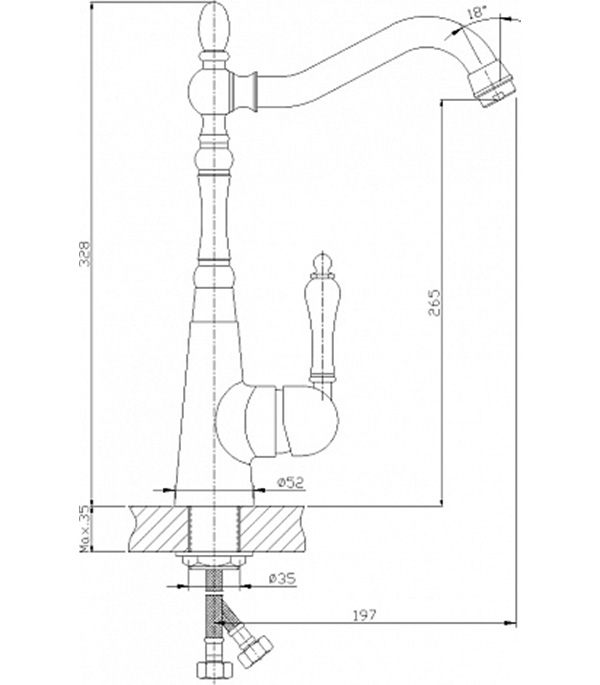 - Материал смесителя и покрытия латунь/ хром, керамический картридж d35 мм, металлическая рукоятка