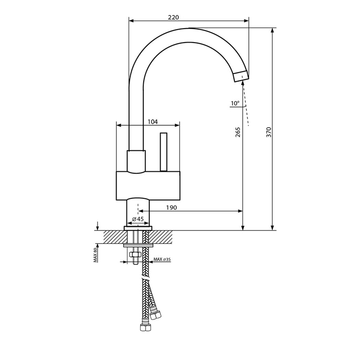 - Гибкая подводка гибкая подводка в комплекте, длина 40 см, присоединительные размеры: G 1/2"