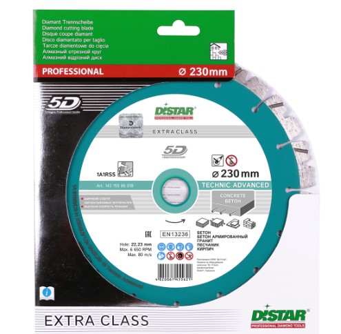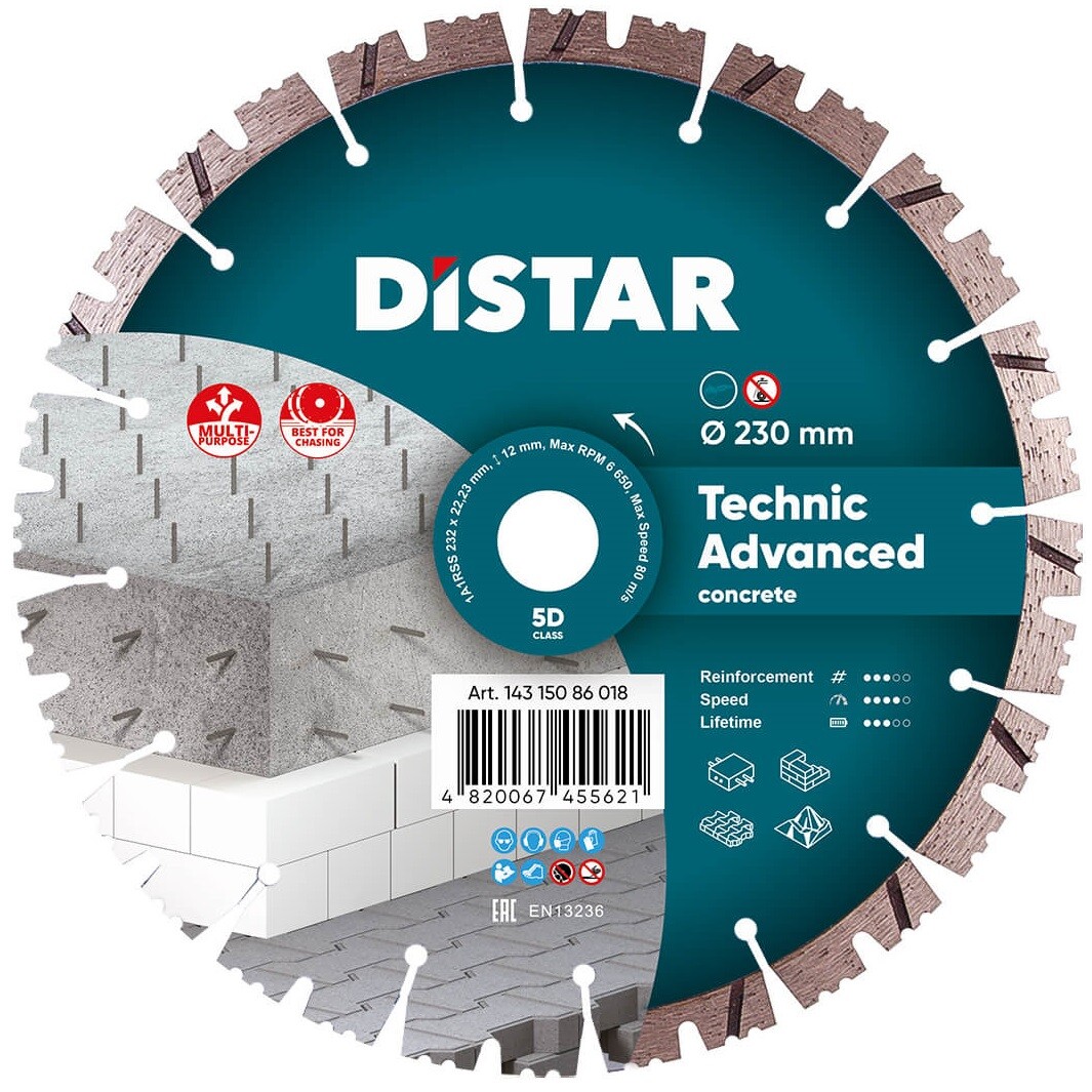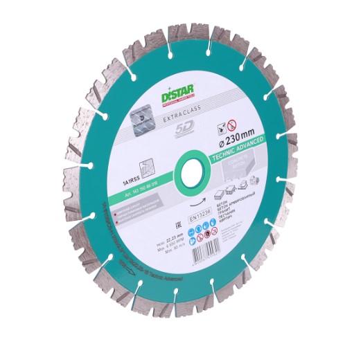 Distar 1A1RSS/C3-H 232x2,6/1,8x12x22,23-16 Technic Advanced (14315086018) - это алмазный диск сегментного типа, диаметром 230 мм. Предназначен для угловой шлифовальной машины. Прекрасно справляется с сухим резом бетона, изветсняка, песчаника, кирпича, тротуарной плитки.