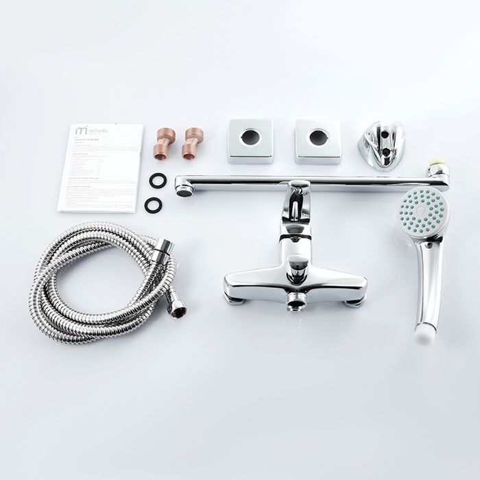 • В комплекте керамический картридж, душевой шланг, держатель, ручной душ, аэратор, смеситель