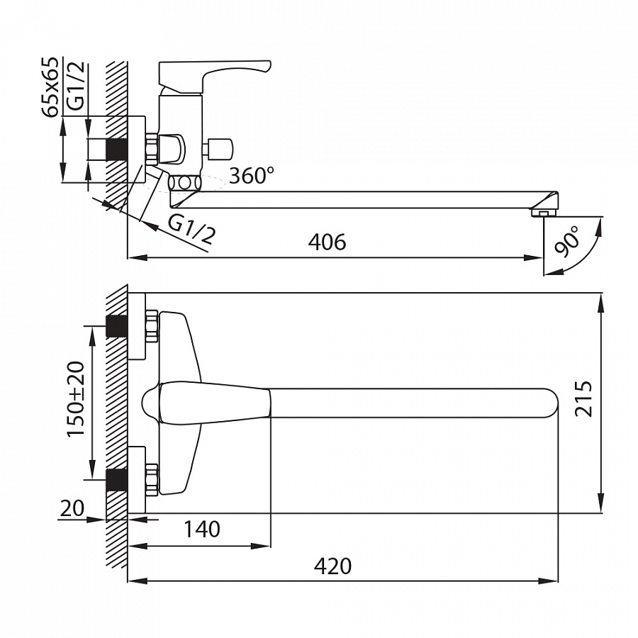 • Длина излива (мм) 406