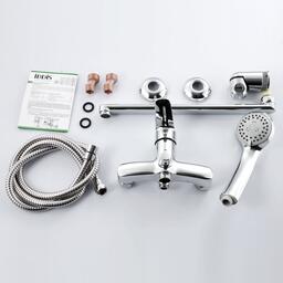 В комплектекерамический картридж, душевой шланг, держатель, ручной душ, аэратор, смеситель