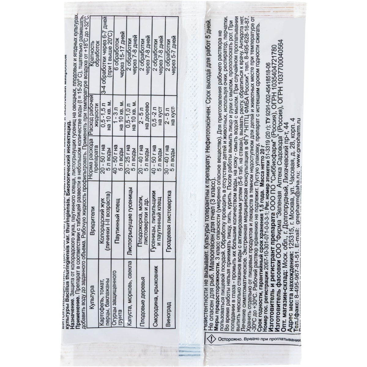 Средство для защиты садовых растений от вредителей «Битоксибациллин» 20 г