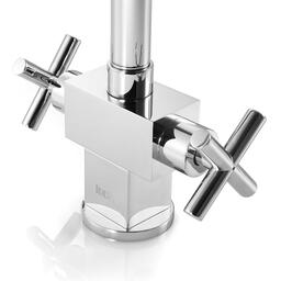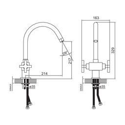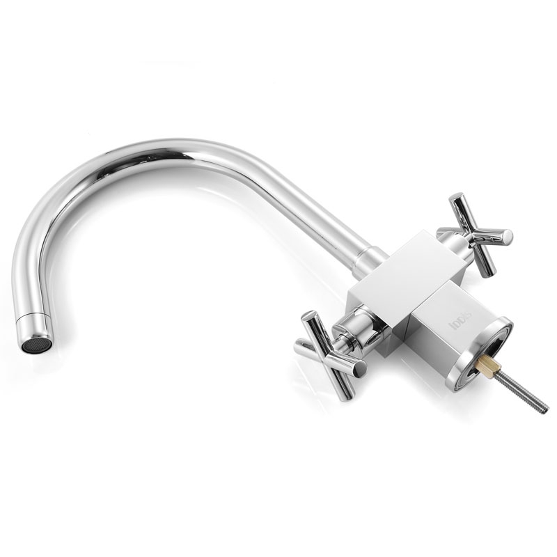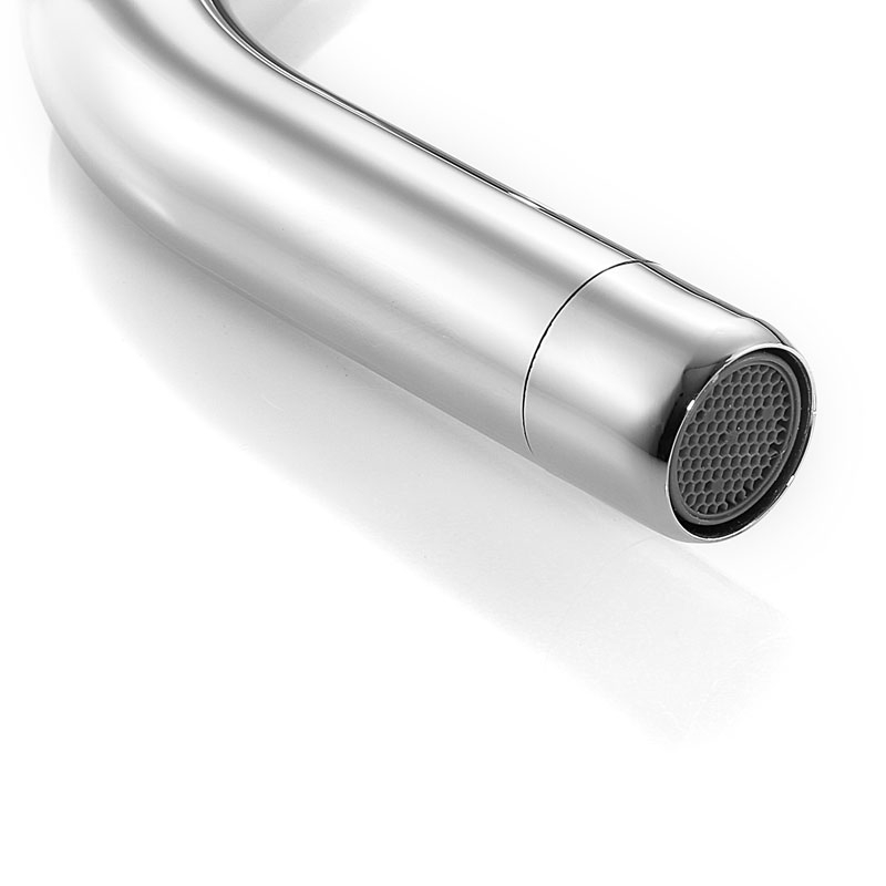 ОписаниеКомплектация: гибкая подводка, крепеж, пластиковая проставка для надежной фиксации смесителя на мойке. Аэратор: пластиковый со специальной сеткой для снижения шума. Кран-буксы: керамические с углом поворота 180°.