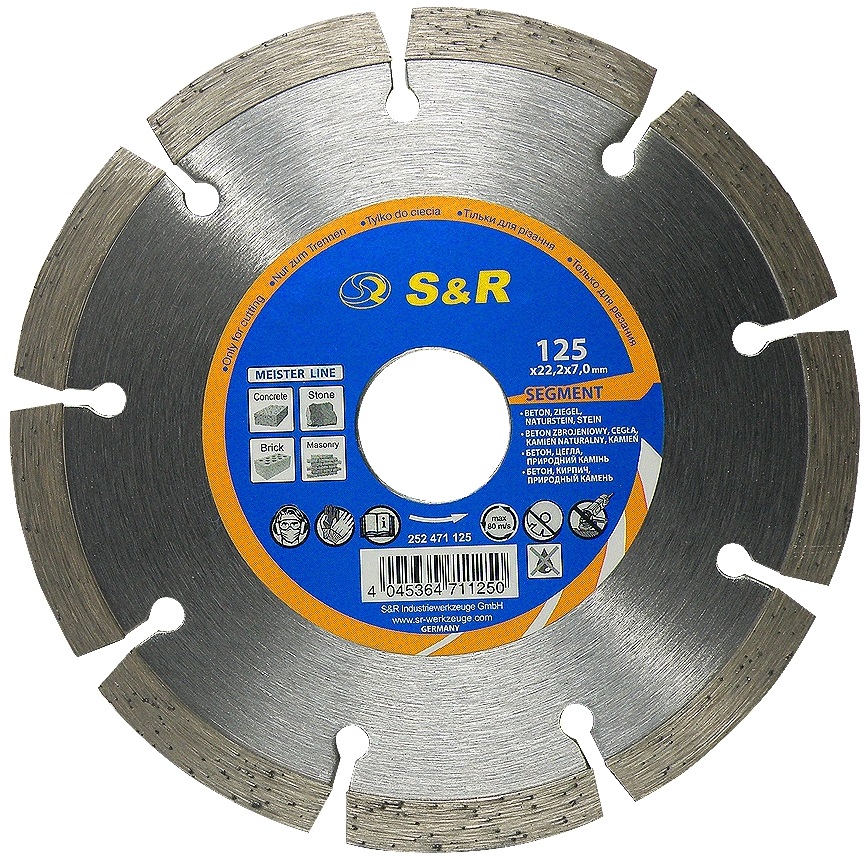 S&R Meister 125x22.2 бетон cуx/мокр (252471125) - это алмазный круг сегментного типа, который относится к профессиональному классу оборудования. Он характеризуется диаметром 125 мм и посадочным местом 22.2 мм. Прекрасно подходит для резки бетона, природного камня, гранита, кирпича.