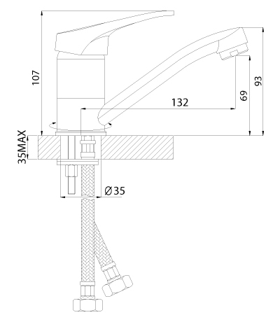 - В комплекте гибкая подводка, керамический картридж, аэратор, смеситель